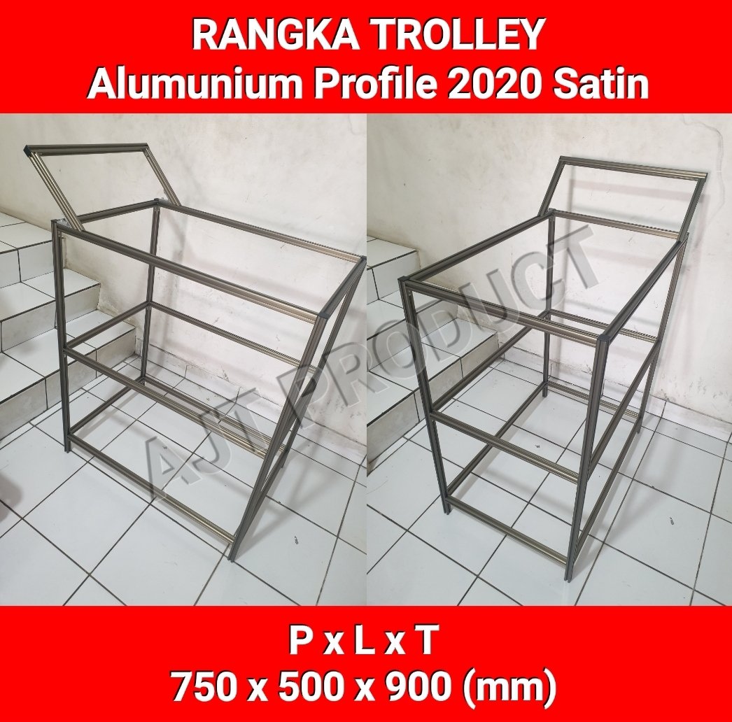 Rangka Trolley dengan Alumunium Profile 2020 Warna Satin… Tinggal pasang roda (castor) dan alas nya, bisa Plat Stainless Steel, Triplek atau PVC…