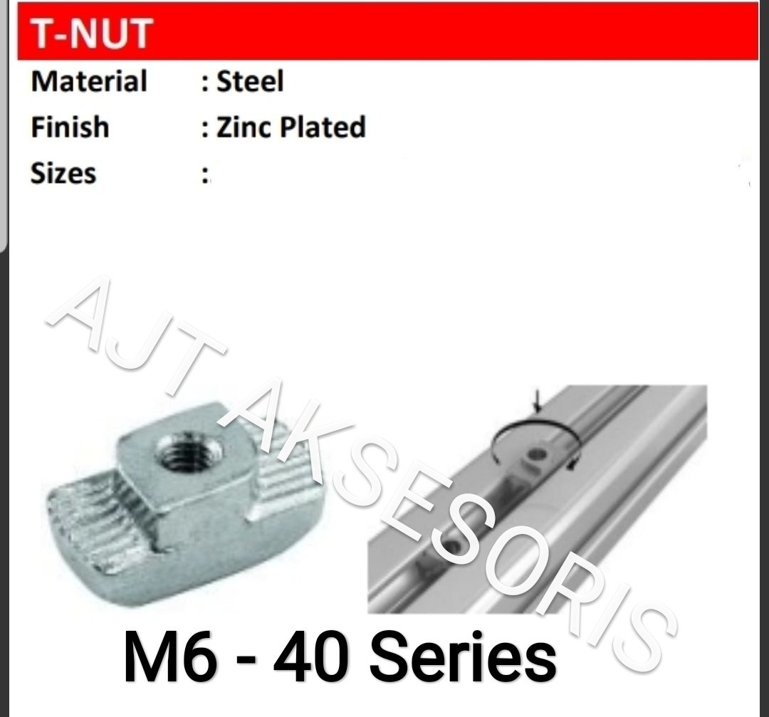 Salah satu fastener / aksesoris aluminium profile yang paling sering digunakan adalah Tnut M6 40 series. Baut/Bolt nya ukuran M6. Cocok untuk dipakai di alumunium profile 40 Series