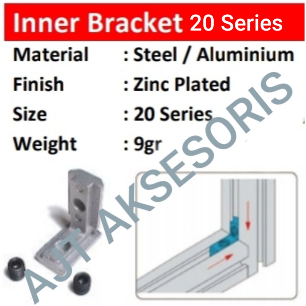 Untuk connector siku 90° alumunium profile 2020 yang dari sisa dalam slot, ada aksesoris yang disebut Inner bracket. Bracket ini sudah include baut tanamnya.