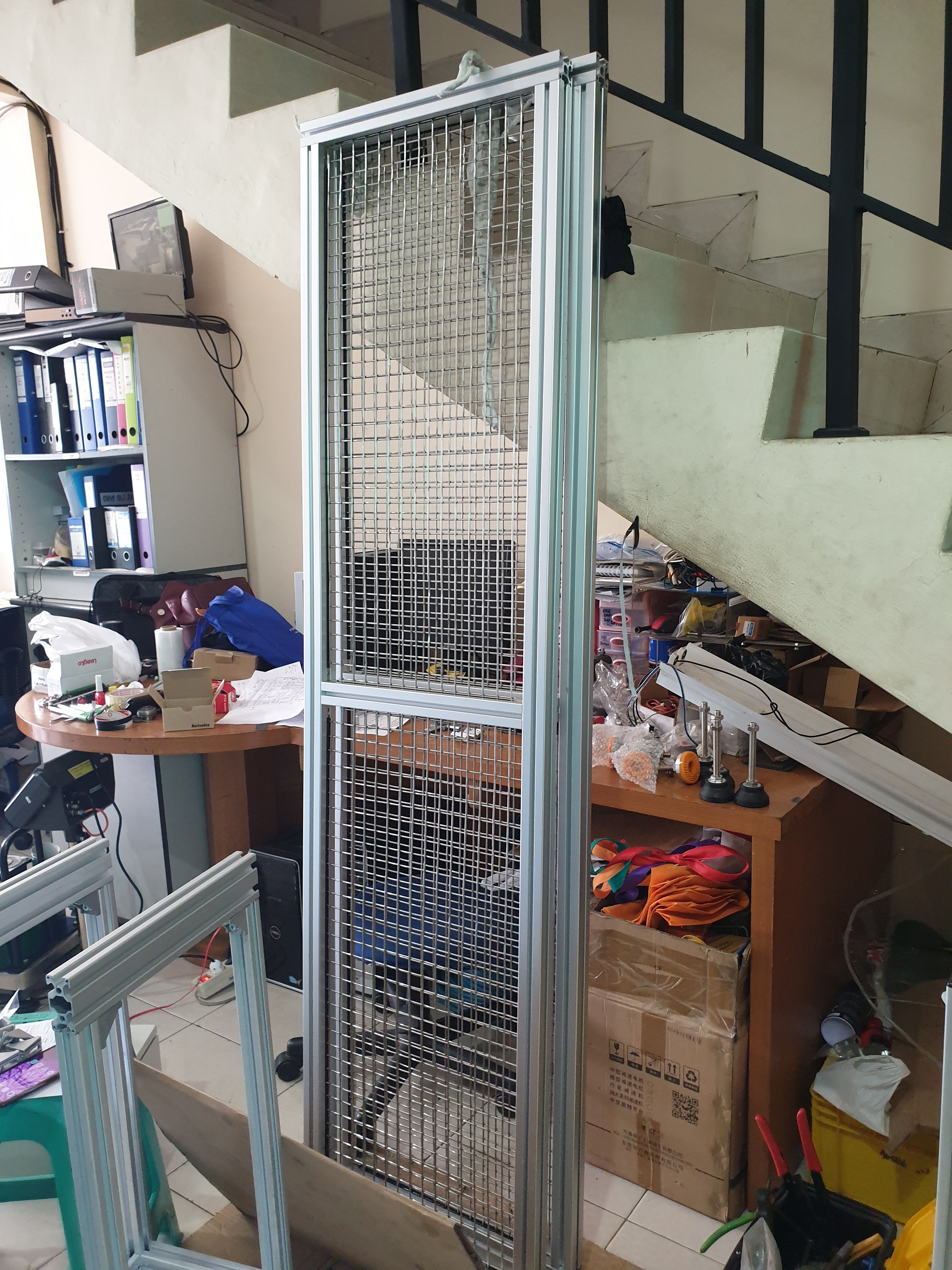 Aluminium Profile 4040 dikombinasikan dengan wiremesh yang dijepit dengan Glass Strip, menghasilkan sekat yang cocok untuk safety box ataupun dinding lain.
