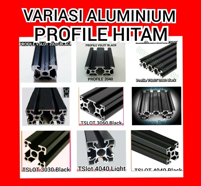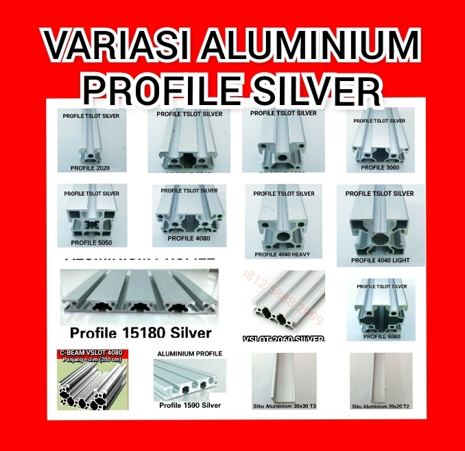 Semua type aluminium profile extrusion di kami selalu ready stock. Begitu juga dengan kelengkapan untuk fabrikasinya seperti bracket siku, nut, mur baut, adjuster foot, castor, mounting plate dll.